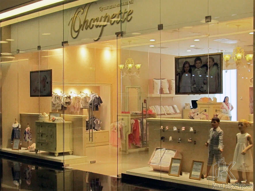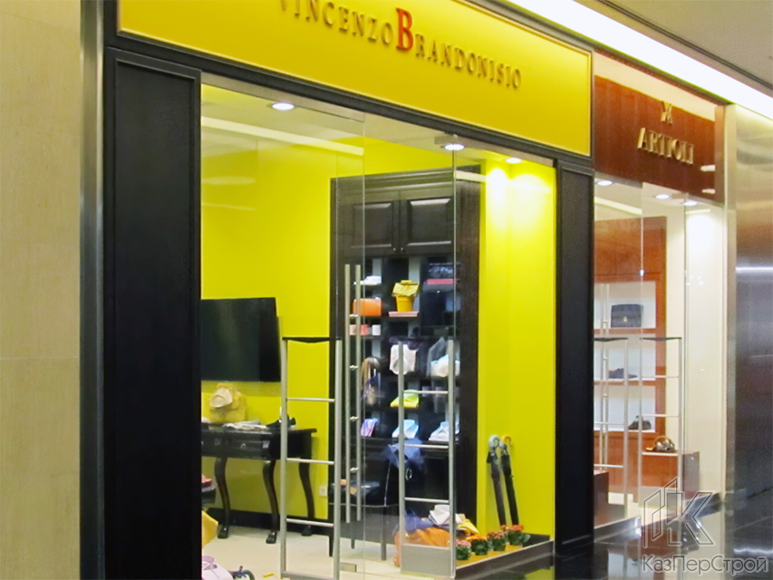 Одним из самых значительных проектов по обустройству коммерческих помещений, стал проект для ТЦ «Esentai Mall» (Есентай мол) в Алматы, где мы изготовили и установили стеклянные перегородки для бутиков: «BABY BOOM», «EMPIRE», «LADY COLLECTION», «PUMA» и «PORSCHE», а также «Choupette», «Artioli» и «Vincenzo Brandonisio», для отделки витрины которого, были также использованы панели, облицованные шпоном ценных пород дерева, элегантно сочетающиеся с роскошным внутренним убранством бутика и его витрины.